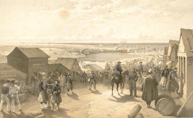 - La première image provient de gallica et est une estampe de 1856 Kamiesch. ; Vue de la base francaise d’opérations la carte est issue de wikipedia.