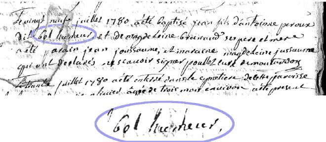 1780 - Moutardon - Naissance de Jean Peroux #