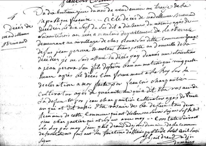 1804 - Moutardon - Décès de Madeleine Brunaud #